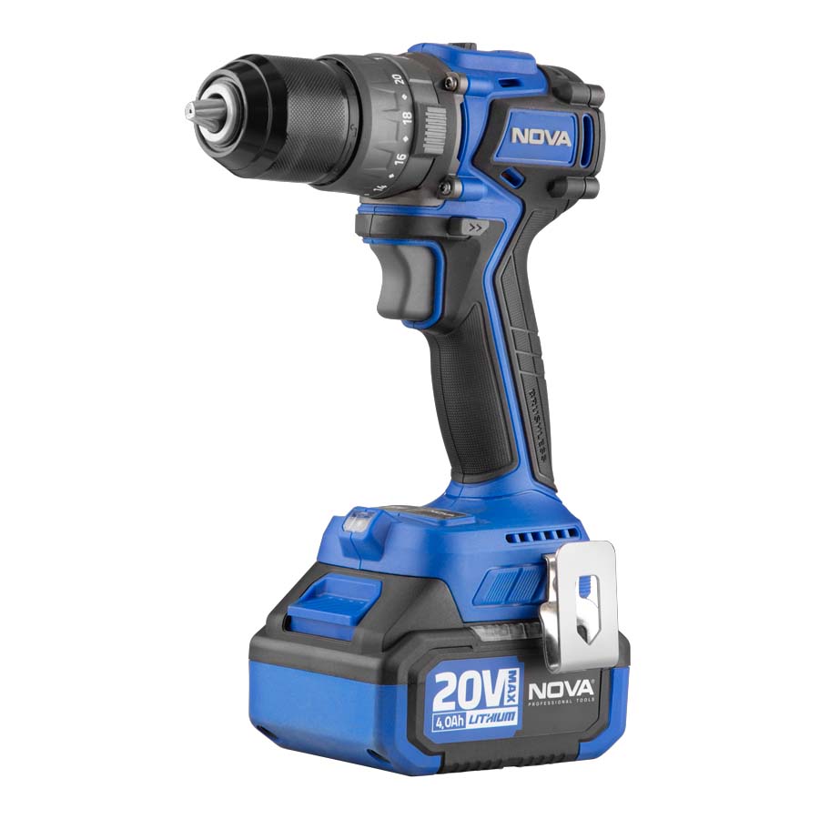 ویژگیهای دریل شارژی چکشی براشلس 20 ولت نووا مدل 5524