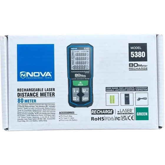 به همین دلیل متر لیزری 80 متری نور سبز شارژی نووا مدل 5380 انتخاب مناسبی برای پروژههای بیرونی و محیطهای بزرگ است.