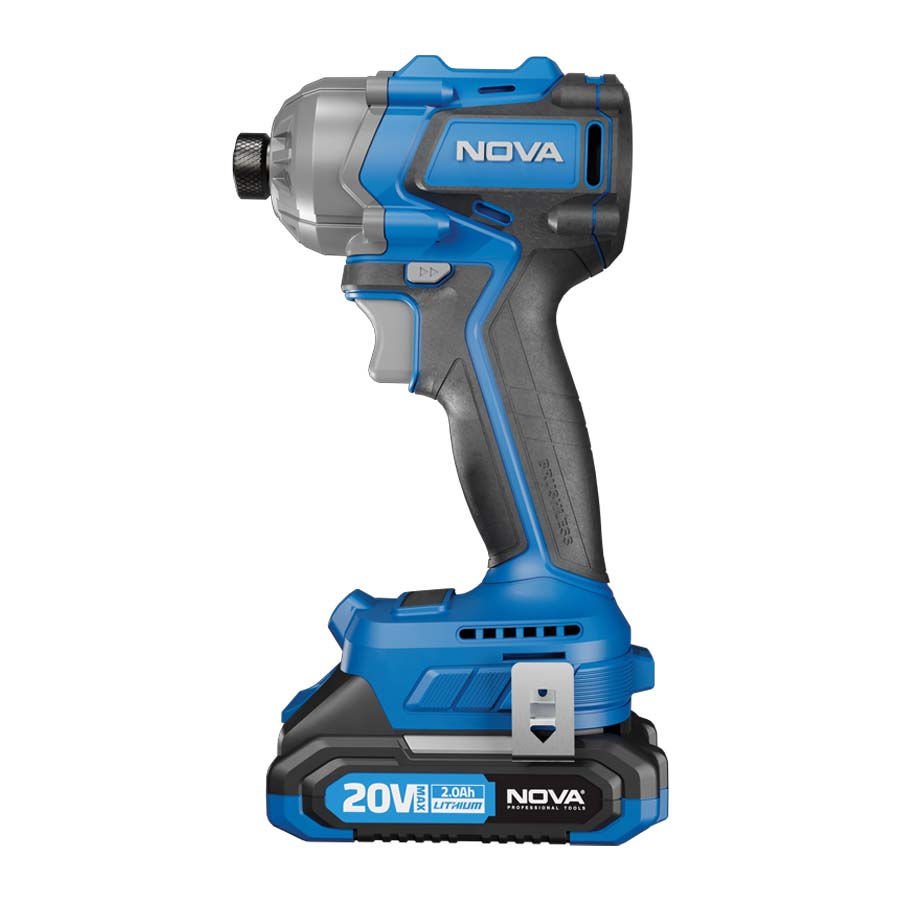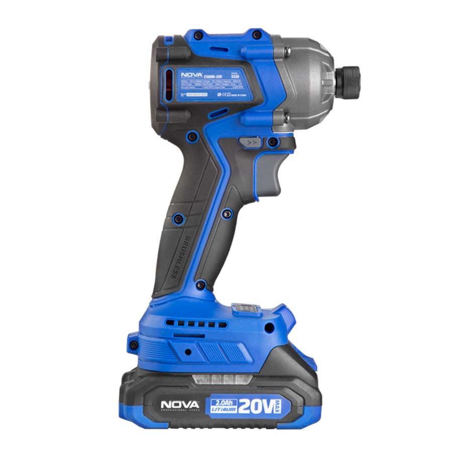 پیچ گوشتی شارژی ضربه ای براشلس 20 ولت نووا مدل 5530 با موتور براشلس حرارت کمتری تولید میکند و طول عمر آن تا ۱۰ برابر مدلهای معمولی است. گشتاور ۲۳۰ نیوتنمتر آن پیچهای بزرگ و مقاوم را بهراحتی باز و بسته میکند. سه حالت تنظیم ضربه کنترل دقیق در کارهای ظریف تا سنگین را فراهم میکند و تکنولوژی توقف اتوماتیک از آسیب به پیچ و سطح کار جلوگیری مینماید.