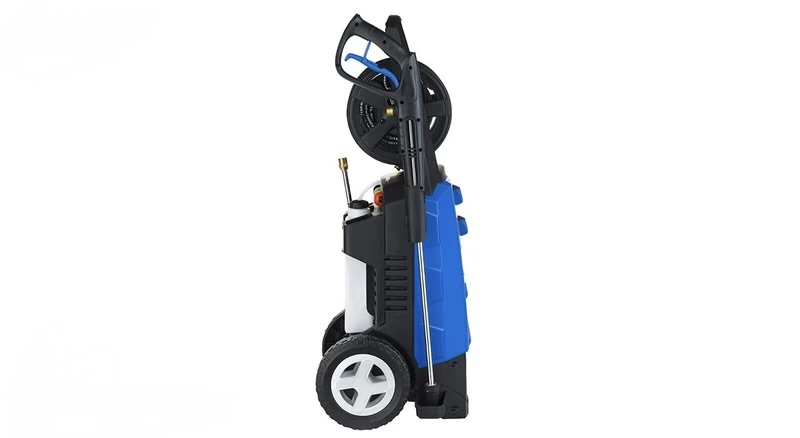دارای چرخ برای حمل آسان و فضای مشخص برای جمع‌کردن شلنگ.